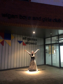 This piece is a reimagined frontage for the old Wigan Casino. Complete with new neon lights and a crowd of club-goers waiting outside